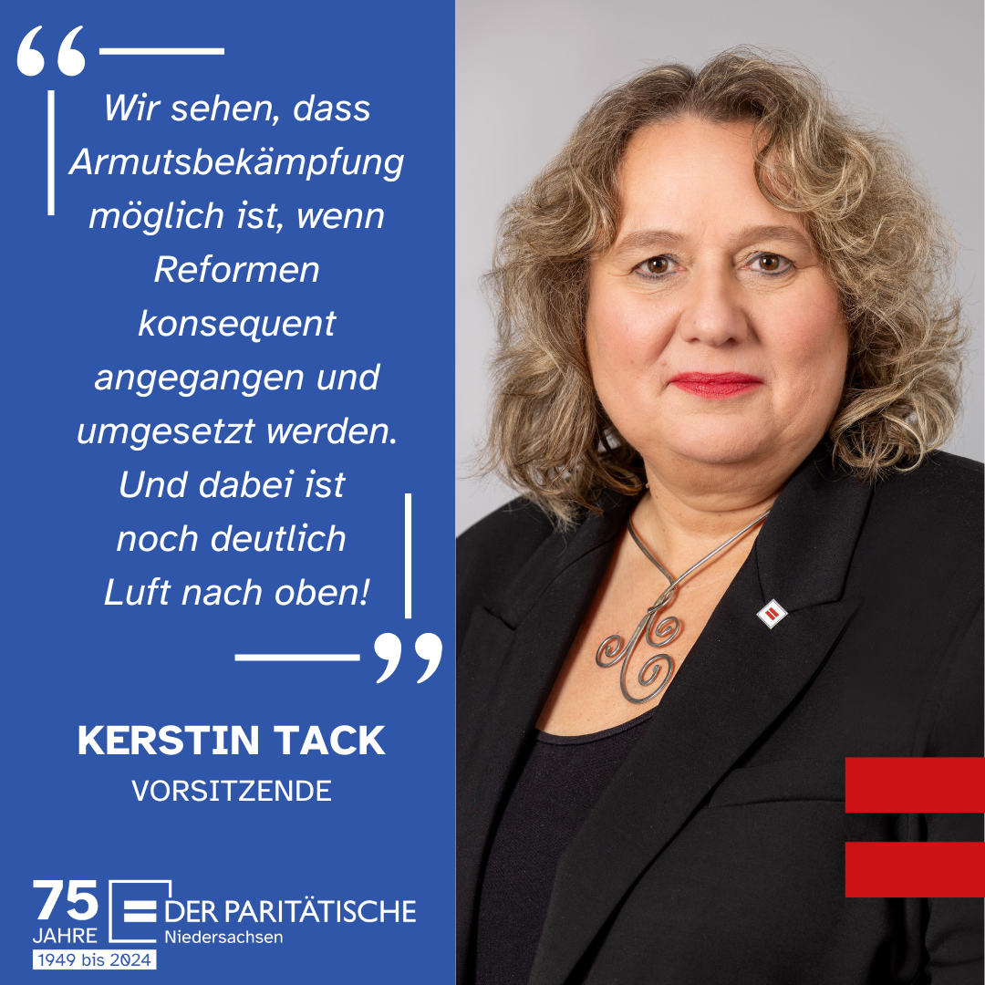 Hier zeigen armutspolitische Maßnahmen wie die Erhöhung von Kindergeld und Kinderzuschlag, die Verbesserungen beim Wohngeld und beim BAföG und die Heraufsetzung des gesetzlichen Mindestlohns Wirkung. „Wir sehen, dass Armutsbekämpfung möglich ist, wenn Reformen konsequent angegangen und umgesetzt werden. Und dabei ist noch deutlich Luft nach oben“, sagt Kerstin Tack und mahnt eine Erhöhung der Regelsätze beim Bürgergeld und in der Altersgrundsicherung sowie einen armutsfesten Familienlastenausgleich an.