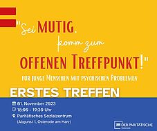 Für die Region Osterode am Harz entsteht ein Treffpunkt für junge Menschen im Alter zwischen 14 und 27 Jahren, die mit psychischen Problemen zu kämpfen haben. Das erste Treffen findet bereits am 1. November um 18:00 Uhr in den Räumlichkeiten des Paritätischen Sozialzentrums, Abgunst 1 in Osterode, statt.