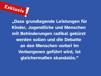 Dem Paritätischen Niedersachsen liegt ein internes Arbeitspapier vor, das belegt: Bund, Länder und kommunale Spitzenverbände diskutieren im Verborgenen drastische Kürzungen bei Leistungen für Kinder, Jugendliche und Menschen mit Behinderungen.